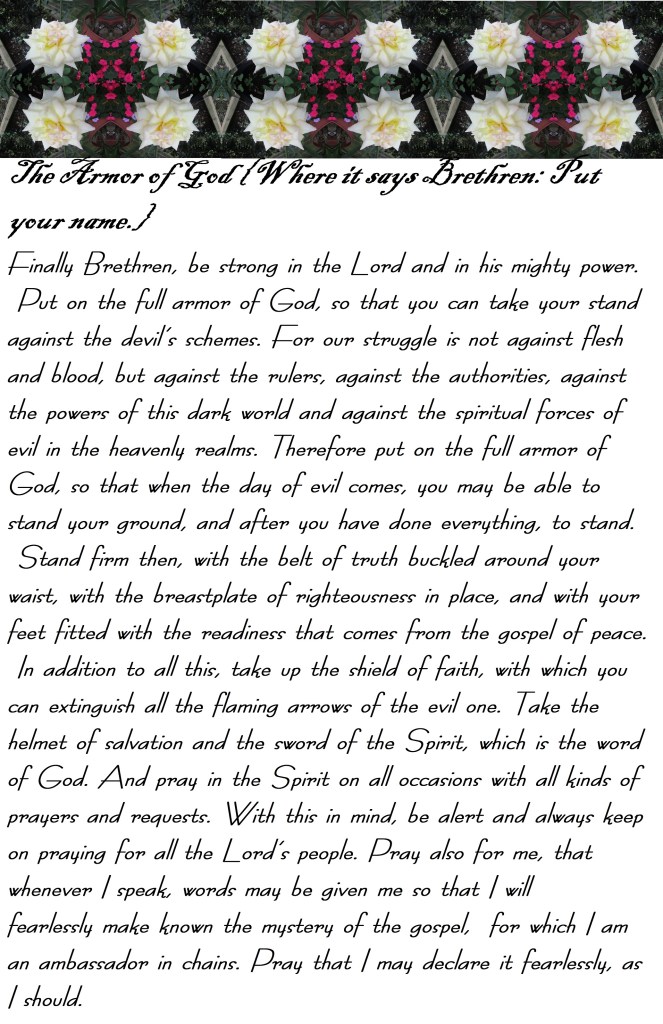 The Armor of God {Where it says Brethren: Put your name.}
