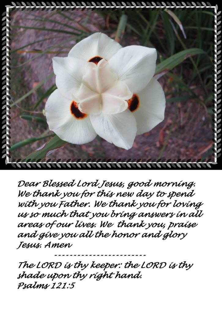 Dear Blessed Lord Jesus, good morning. We thank you for this new day to spend with you Father. We thank you for loving us so much that you bring answers in all areas of our lives. We thank you, praise and give you all the honor and glory Jesus. Amen