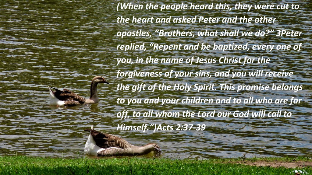 (When the people heard this, they were cut to the heart and asked Peter and the other apostles, “Brothers, what shall we do?” Peter replied, “Repent and be baptized, every one of you, in the name of Jesus Christ for the forgiveness of your sins, and you will receive the gift of the Holy Spirit. This promise belongs to you and your children and to all who are far off, to all whom the Lord our God will call to Himself.”)
