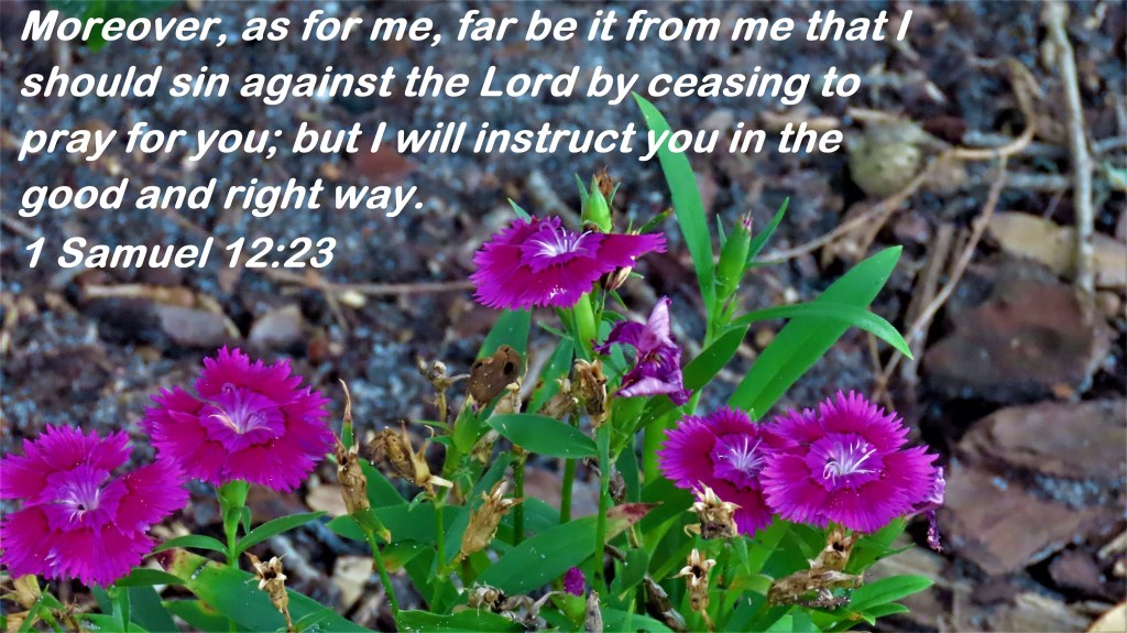 Moreover, as for me, far be it from me that I should sin against the Lord by ceasing to pray for you; but I will instruct you in the good and right way.