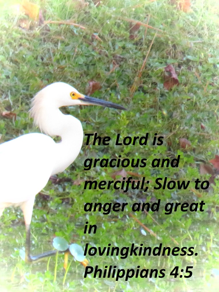 The Lord is gracious and merciful; Slow to anger and great in lovingkindness. Philippians 4:5