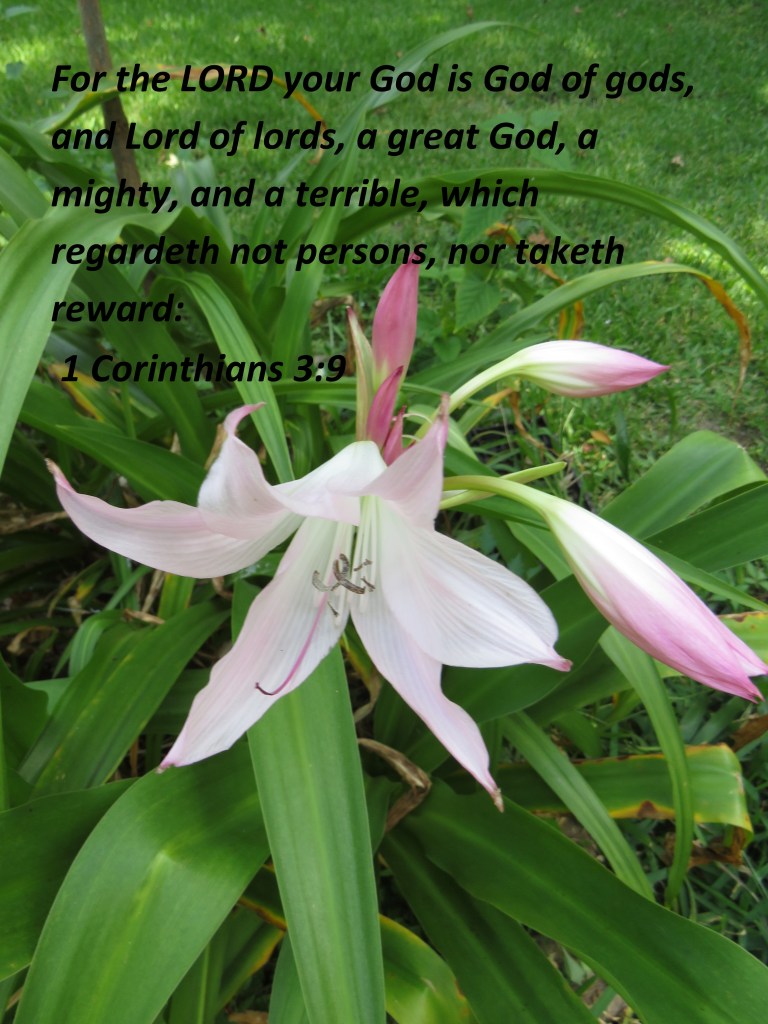 For the LORD your God is God of gods, and Lord of lords, a great God, a mighty, and a terrible, which regards not persons, nor taketh reward: 1 Corinthians 3:9