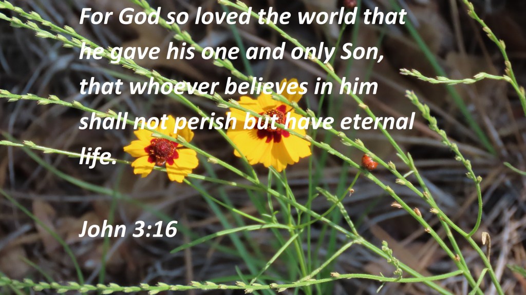 For God so loved the world that he gave his one and only Son, that whoever believes in him shall not perish but have eternal life.