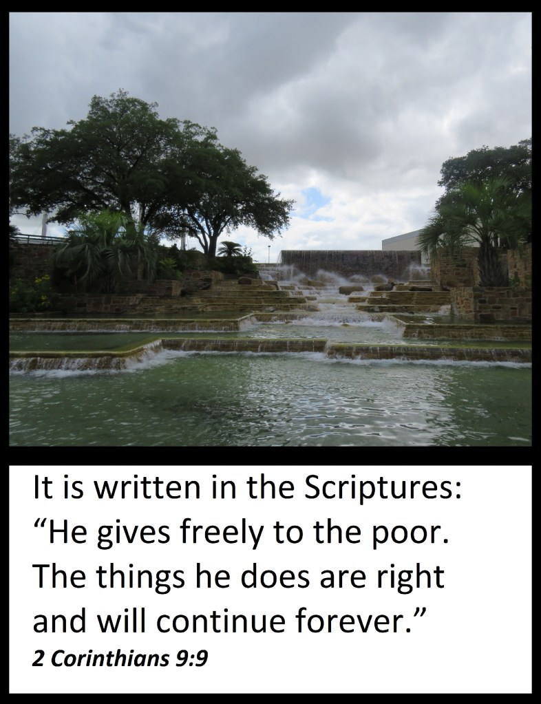 “Remember this: The person who plants a little will have a small harvest, but the person who plants a lot will have a big harvest. Each of you should give as you have decided in your heart to give. You should not be sad when you give, and you should not give because you feel forced to give. God loves the person who gives happily. And God can give you more blessings than you need. Then you will always have plenty of everything, enough to give to every good work. It is written in the Scriptures: “He gives freely to the poor. The things he does are right and will continue forever.”