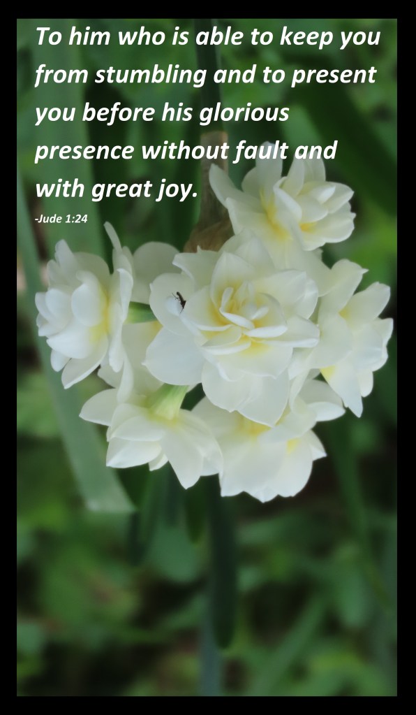 To him who is able to keep you from stumbling and to present you before his glorious presence without fault and with great joy.
