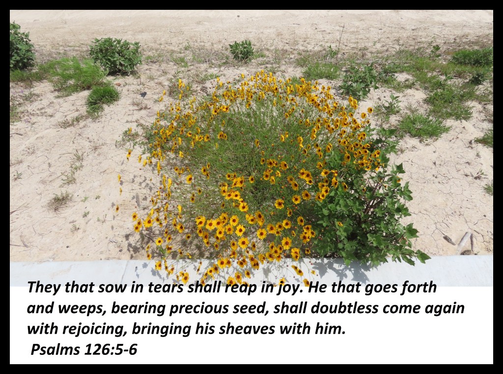 They that sow in tears shall reap in joy. He that goes forth and weeps, bearing precious seed, shall doubtless come again with rejoicing, bringing his sheaves with him. Psalms 126:5-6