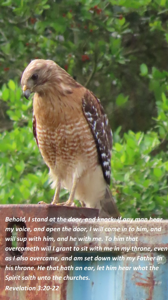 Behold, I stand at the door, and knock: if any man hears my voice, and open the door, I will come in to him, and will sup with him, and he with me. To him that overcomes will I grant to sit with me in my throne, even as I also overcame, and am set down with my Father in his throne. He that hath an ear, let him hear what the Spirit saith unto the churches.