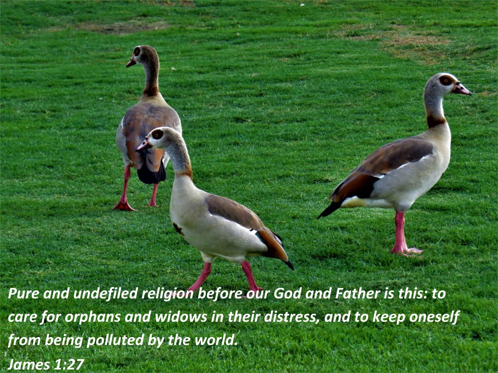 Pure and undefiled religion before our God and Father is this: to care for orphans and widows in their distress, and to keep oneself from being polluted by the world.