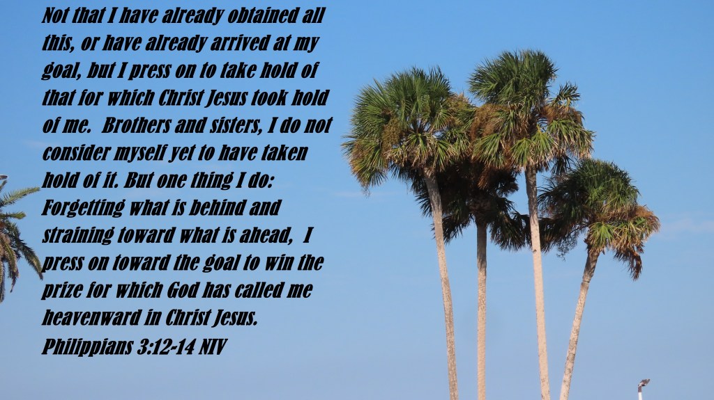 Not that I have already obtained all this, or have already arrived at my goal, but I press on to take hold of that for which Christ Jesus took hold of me. Brothers and sisters, I do not consider myself yet to have taken hold of it. But one thing I do: Forgetting what is behind and straining toward what is ahead, I press on toward the goal to win the prize for which God has called me heavenward in Christ Jesus.
