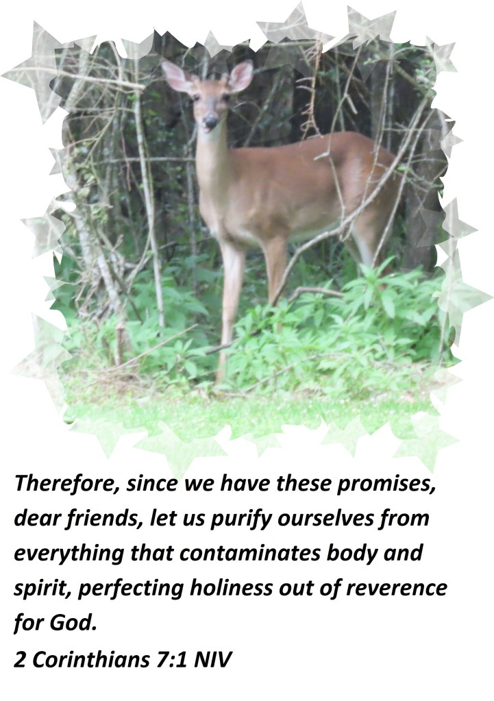 Therefore, since we have these promises, dear friends, let us purify ourselves from everything that contaminates body and spirit, perfecting holiness out of reverence for God.