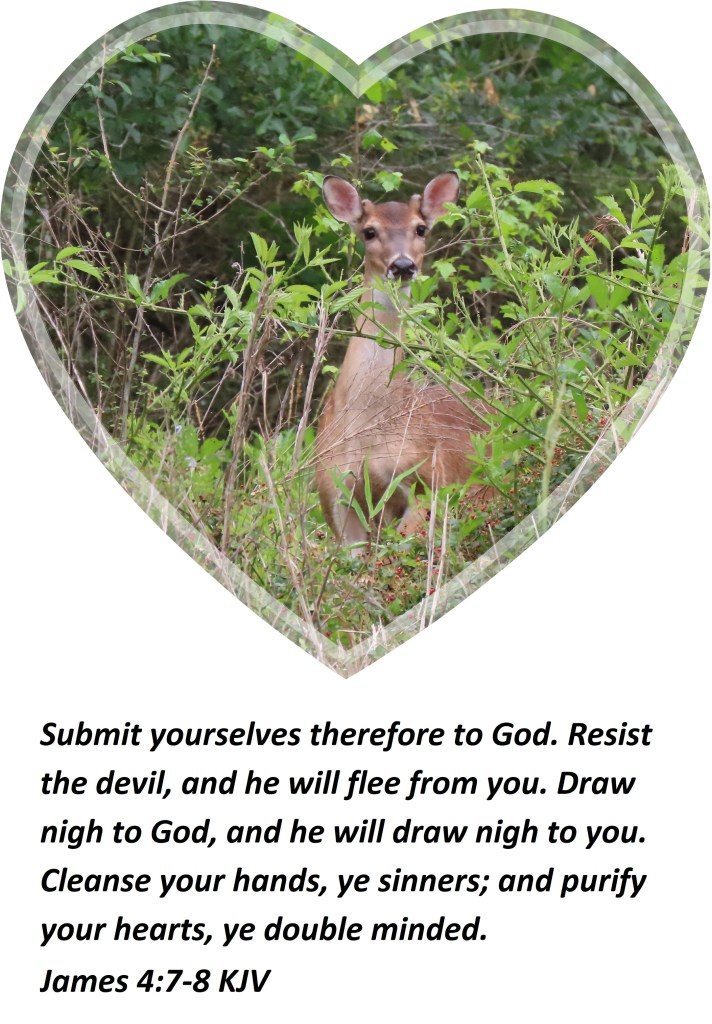 Submit yourselves therefore to God. Resist the devil, and he will flee from you. Draw nigh to God, and he will draw nigh to you. Cleanse your hands, ye sinners; and purify your hearts, ye double minded.