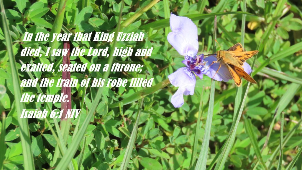 In the year that King Uzziah died, I saw the Lord, high and exalted, seated on a throne; and the train of his robe filled the temple.