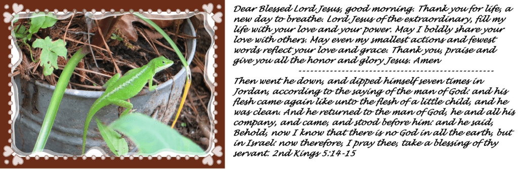 Dear Blessed Lord Jesus, good morning. Thank You for life, a new day to breathe. Lord Jesus of the extraordinary, fill my life with Your love and Your power. May I boldly share Your love with others. May even my smallest actions and fewest words reflect Your love and grace. Thank You, Love You, praise and give You all the honor and glory Jesus in Your Precious Name Amen.