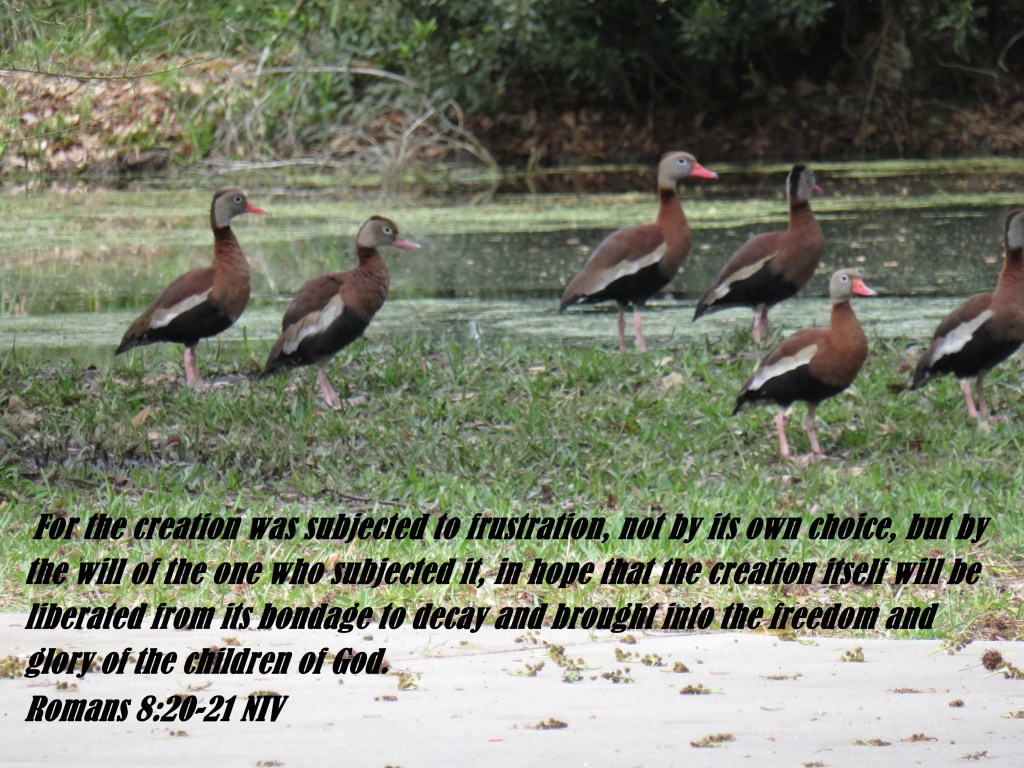 For the creation was subjected to frustration, not by its own choice, but by the will of the one who subjected it, in hope that the creation itself will be liberated from its bondage to decay and brought into the freedom and glory of the children of God.