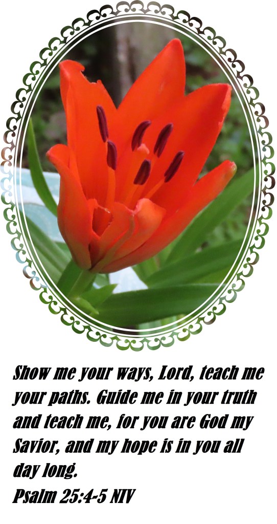 Show me your ways, Lord, teach me your paths. Guide me in your truth and teach me, for you are God my Savior, and my hope is in you all day long.