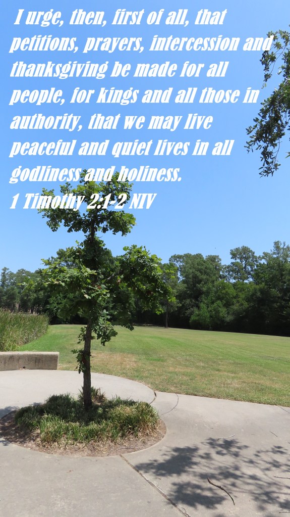 I urge, then, first of all, that petitions, prayers, intercession, and thanksgiving be made for all people, for kings and all those in authority, that we may live peaceful and quiet lives in all godliness and holiness.