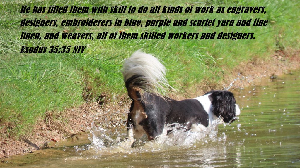 He has filled them with the skill to do all kinds of work as engravers, designers, embroiderers in blue, purple, and scarlet yarn and fine linen, and weavers, all of them skilled workers and designers.