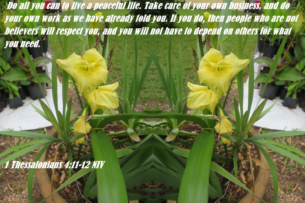 Do all you can to live a peaceful life. Take care of your own business, and do your own work as we have already told you. If you do, then people who are not believers will respect you, and you will not have to depend on others for what you need.