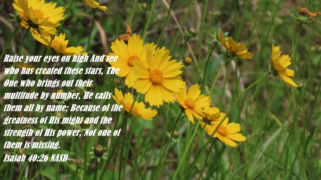 Raise your eyes on high And see who has created these stars, The One who brings out their multitude by number, He calls them all by name; Because of the greatness of His might and the strength of His power, Not one of them is missing.