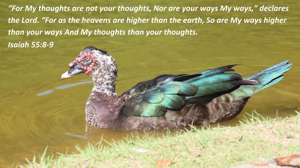 “For My thoughts are not your thoughts, Nor are your ways My ways,” declares the Lord. “For as the heavens are higher than the earth, So are My ways higher than your ways And My thoughts than your thoughts.