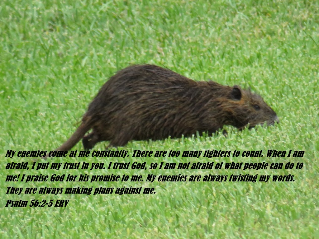 My enemies come at me constantly. There are too many fighters to count. When I am afraid, I put my trust in you. I trust God, so I am not afraid of what people can do to me! I praise God for his promise to me. My enemies are always twisting my words. They are always making plans against me.