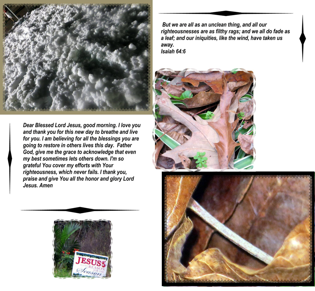 But we are all as an unclean thing, and all our righteousnesses are as filthy rags; and we all do fade as a leaf; and our iniquities, like the wind, have taken us away.
