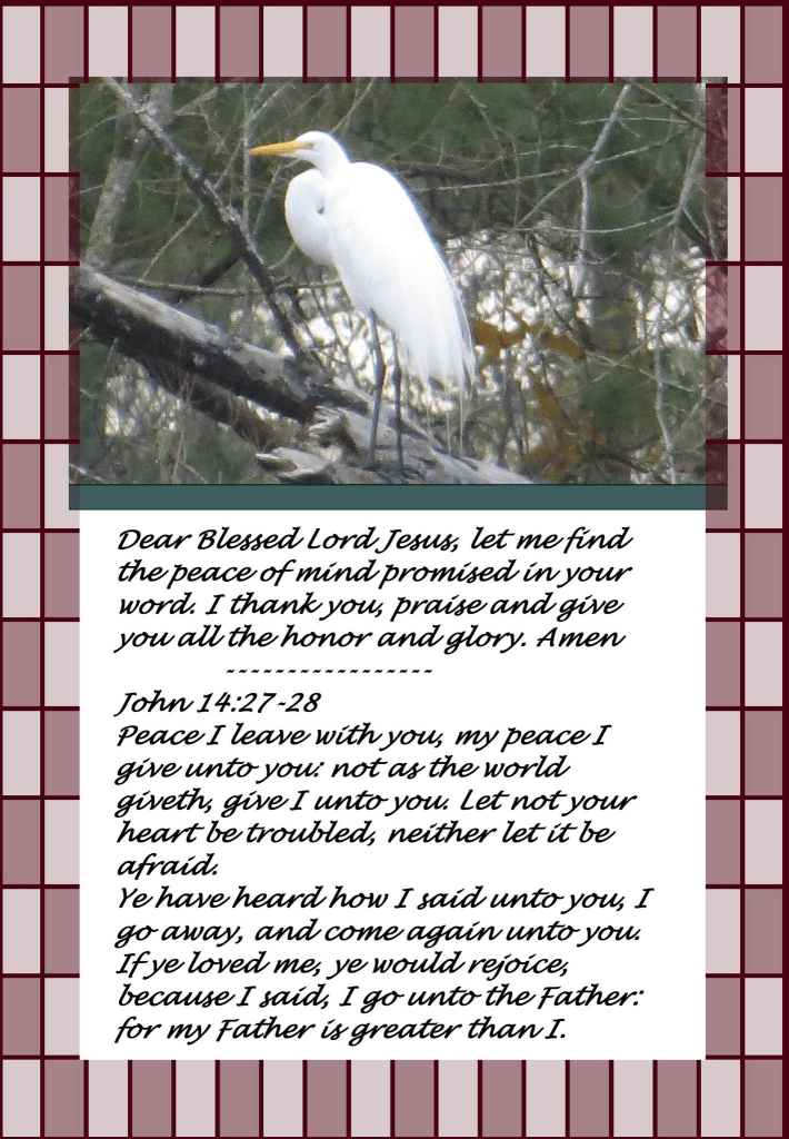 Dear Blessed Lord Jesus, let me find the peace of mind promised in your word. I thank you, praise and give you all the honor and glory. Amen.