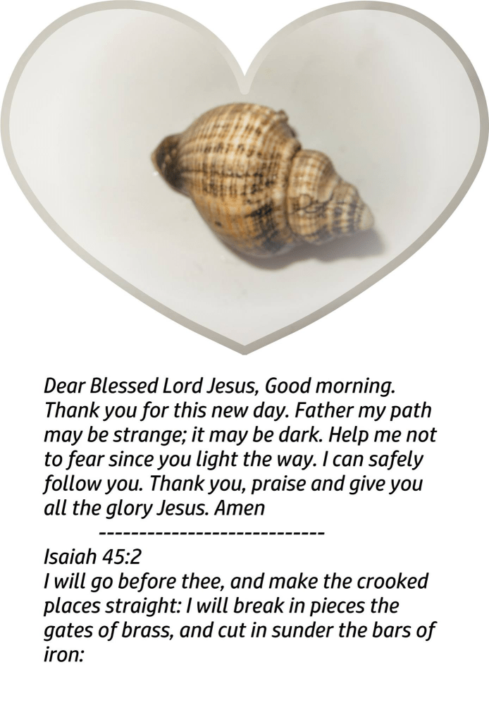Dear Blessed Lord Jesus, Good morning. Thank you for this new day. Father my path may be strange; it may be dark. Help me not to fear since you light the way. I can safely follow you. Thank you, praise, and give you all the glory Jesus. Amen.