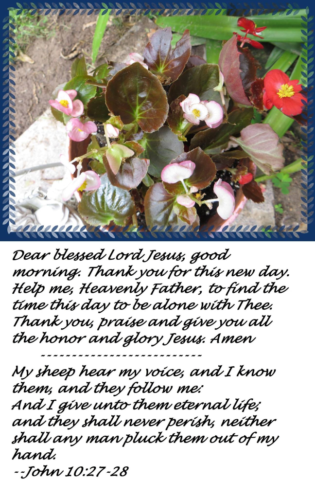 Dear blessed Lord Jesus, good morning. Thank you for this new day. Help me, Heavenly Father, to find the time this day to be alone with Thee. Thank you, praise and give you all the honor and glory Jesus. Amen