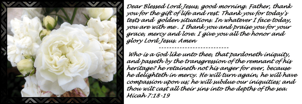 Dear Blessed Lord Jesus, good morning. Father, thank you for the gift of life and rest. Thank you for today’s tests and golden situations. In whatever I face today, you are with me . I thank you and praise you for your grace, mercy and love. I give you all the honor and glory Jesus. Amen
