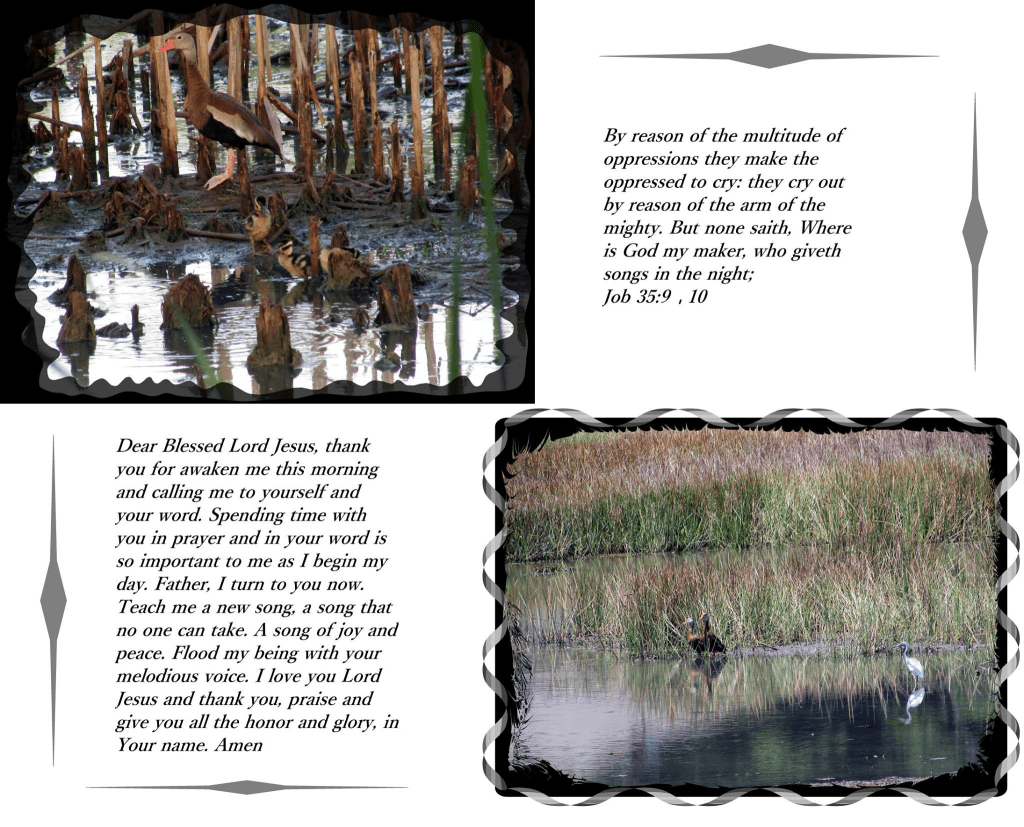 Dear Blessed Lord Jesus, thank you for awaken me this morning and calling me to yourself and your word. Spending time with you in prayer and in your word is so important to me as I begin my day. Father, I turn to you now. Teach me a new song, a song that no one can take. A song of joy and peace. Flood my being with your melodious voice. I love you Lord Jesus and thank you, praise and give you all the honor and glory, in Your name. Amen.