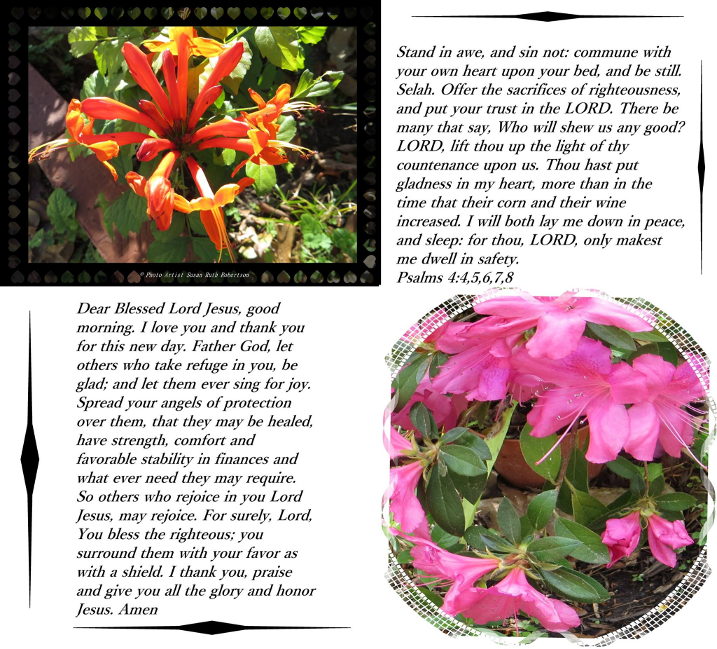 Stand in awe, and sin not: commune with your own heart upon your bed and be still. Selah. Offer the sacrifices of righteousness and put your trust in the LORD. There be many that say, who will shew us any good? LORD, lift thou up the light of thy countenance upon us. Thou hast put gladness in my heart, more than in the time that their corn and their wine increased. I will both lay me down in peace, and sleep: for thou, LORD, only makest me dwell in safety. Psalms 4:4-8