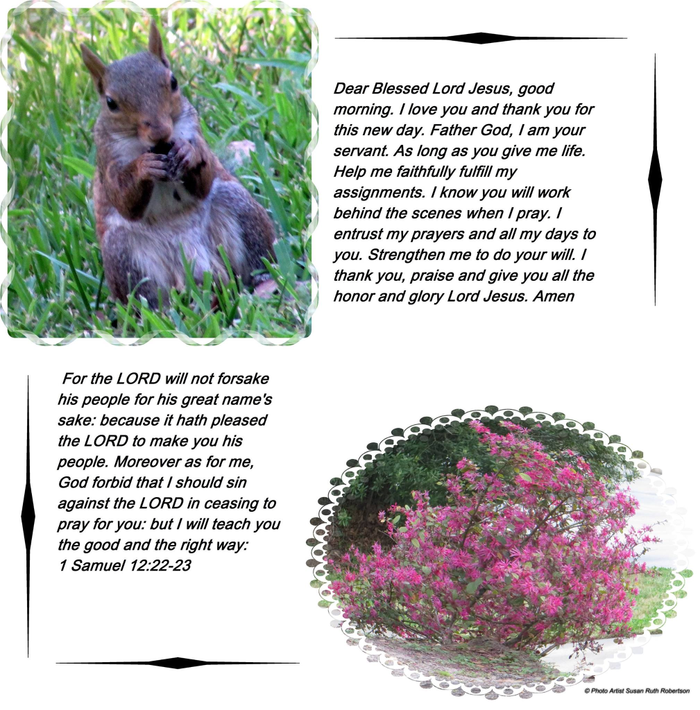 Dear Blessed Lord Jesus, good morning. I love you and thank you for this new day. Father God, I am your servant. As long as you give me life. Help me faithfully fulfill my assignments. I know you will work behind the scenes when I pray. I entrust my prayers and all my days to you. Strengthen me to do your will. I thank you, praise and give you all the honor and glory Lord Jesus. Amen.