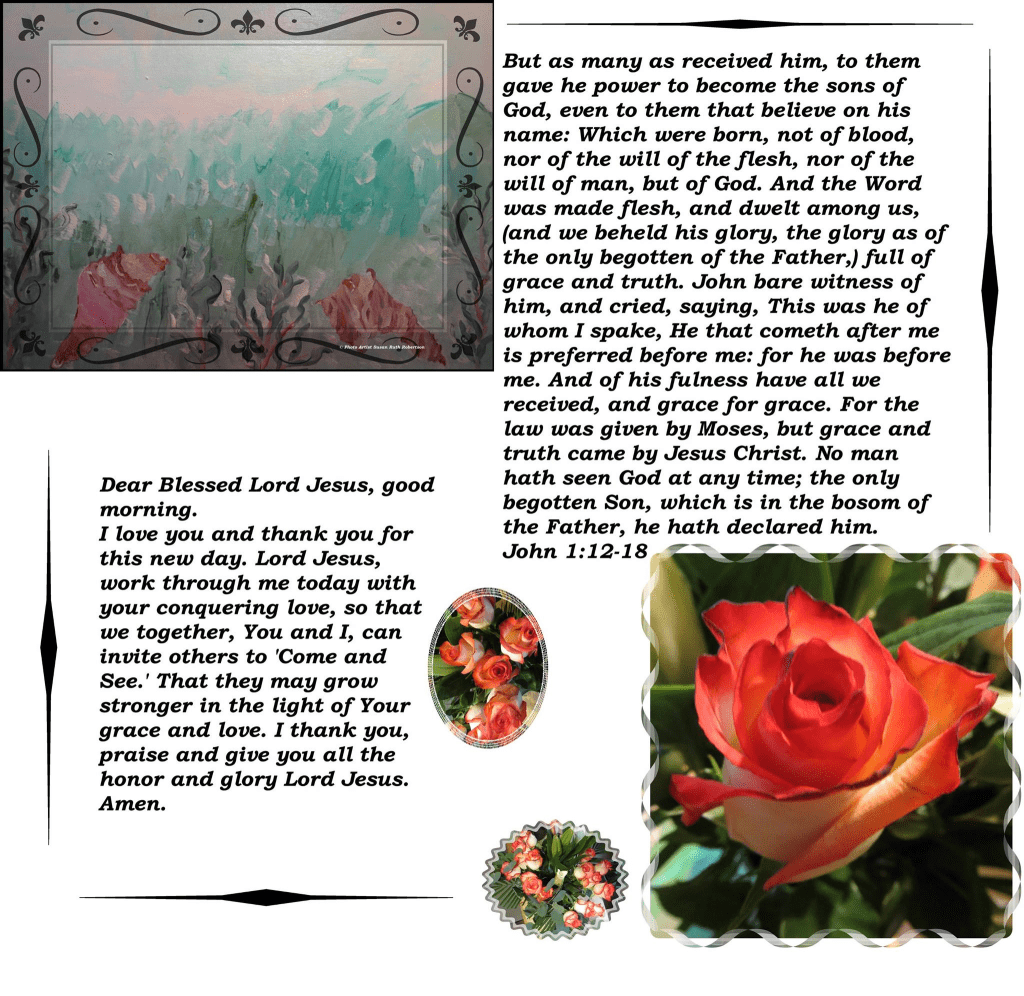 I love you and thank you for this new day. Lord Jesus, work through me today with your conquering love, so that we together, You and I, can invite others to ‘Come and See.’ That they may grow stronger in the light of Your grace and love. I thank you, praise and give you all the honor and glory Lord Jesus. Amen.