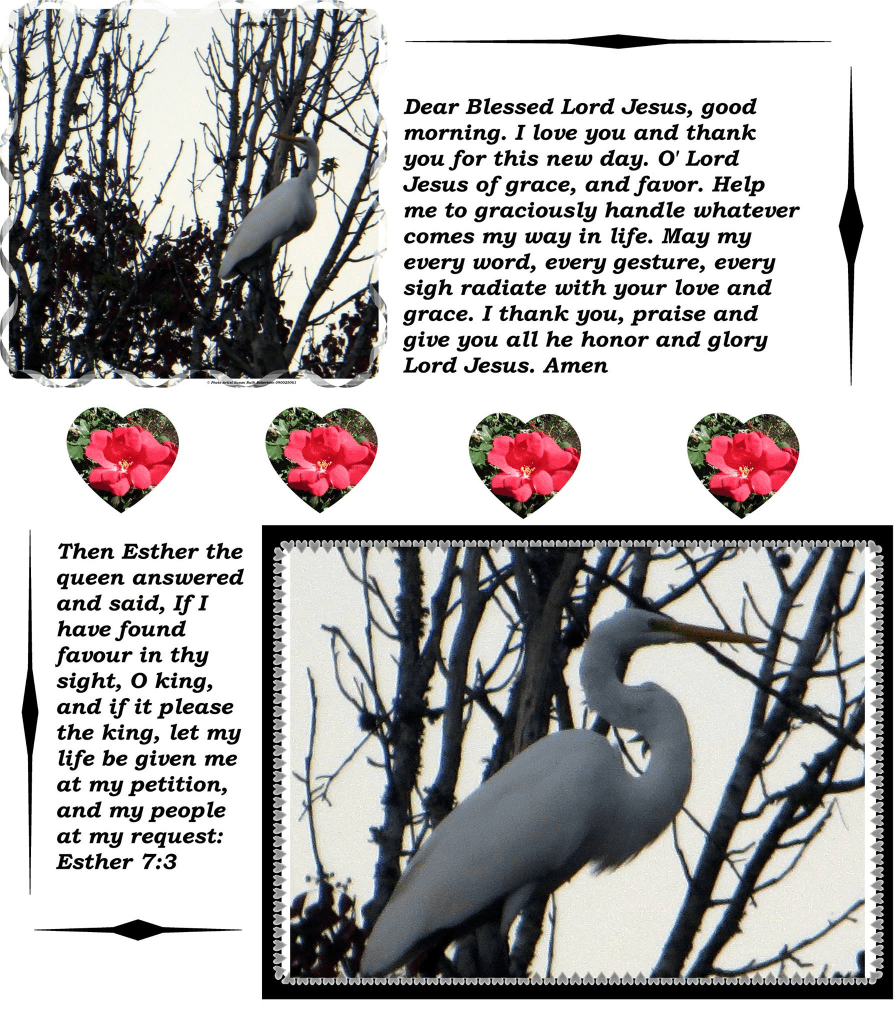 Dear Blessed Lord Jesus, good morning. I love you and thank you for this new day. O’ Lord Jesus of grace, and favor. Help me to graciously handle whatever comes my way in life. May my every word, every gesture, every sigh radiate with your love and grace. I thank you, praise and give you all he honor and glory Lord Jesus. Amen.