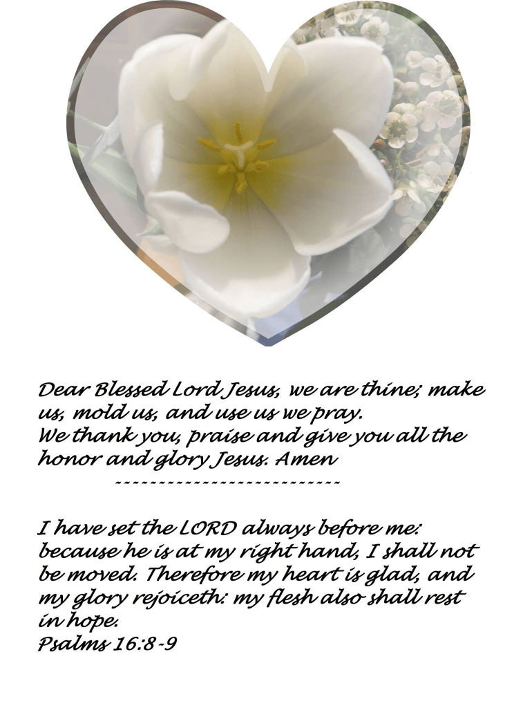I have set the LORD always before me: because he is at my right hand, I shall not be moved. Therefore my heart is glad, and my glory rejoiceth: my flesh also shall rest in hope.