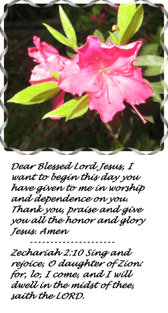 Dear Blessed Lord Jesus, I want to begin this day you have given to me in worship and dependence on you. Thank you, praise and give you all the honor and glory Jesus. Amen