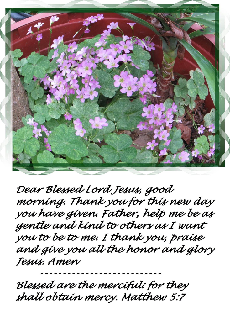 Dear Blessed Lord Jesus, good morning. Thank you for this new day you have given. Father, help me be as gentle and kind to others as I want you to be to me. I thank you, praise and give you all the honor and glory Jesus. Amen