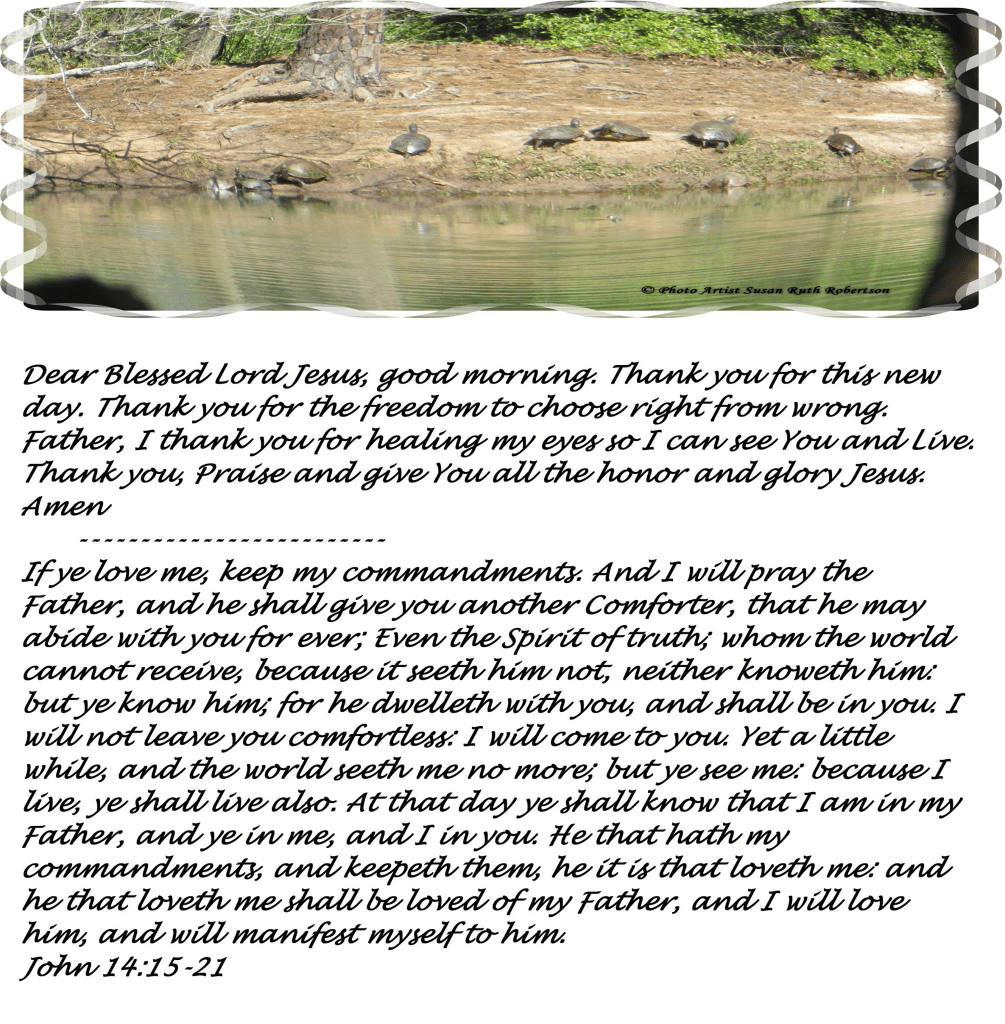Dear Blessed Lord Jesus, good morning. Thank you for this new day. Thank you for the freedom to choose right from wrong. Father, I thank you for healing my eyes so I can see You and Live. Thank you, Praise and give You all the honor and glory Jesus. Amen