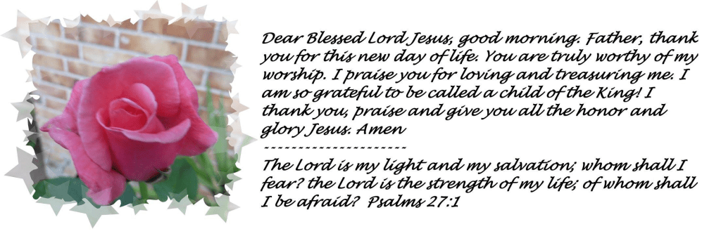 Dear Blessed Lord Jesus, good morning. Father, thank you for this new day of life. You are truly worthy of my worship. I praise you for loving and treasuring me. I am so grateful to be called a child of the King! I thank you, praise and give you all the honor and glory Jesus. Amen