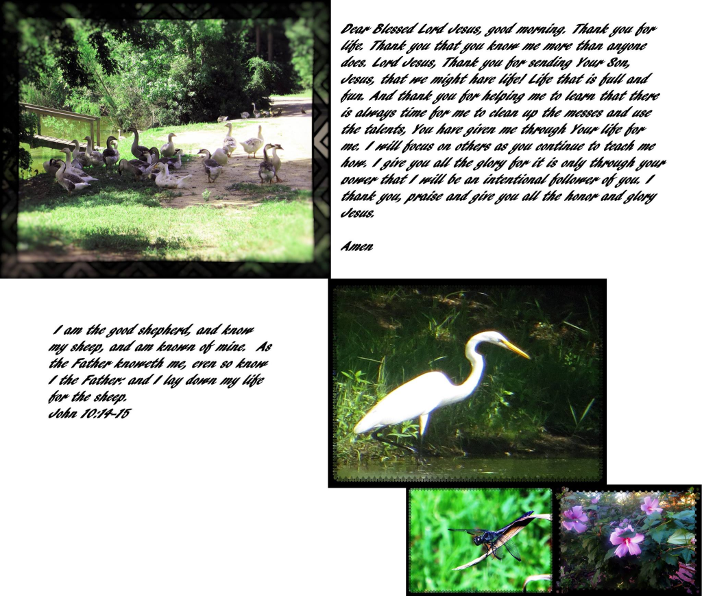 Dear Blessed Lord Jesus, good morning. Thank you for life. Thank you that you know me more than anyone does. Lord Jesus, Thank you for sending Your Son, Jesus, that we might have life! Life that is full and fun. And thank you for helping me to learn that there is always time for me to clean up the messes and use the talents, You have given me through Your life for me. I will focus on others as you continue to teach me how. I give you all the glory for it is only through your power that I will be an intentional follower of you. I thank you, praise and give you all the honor and glory Jesus. Amen