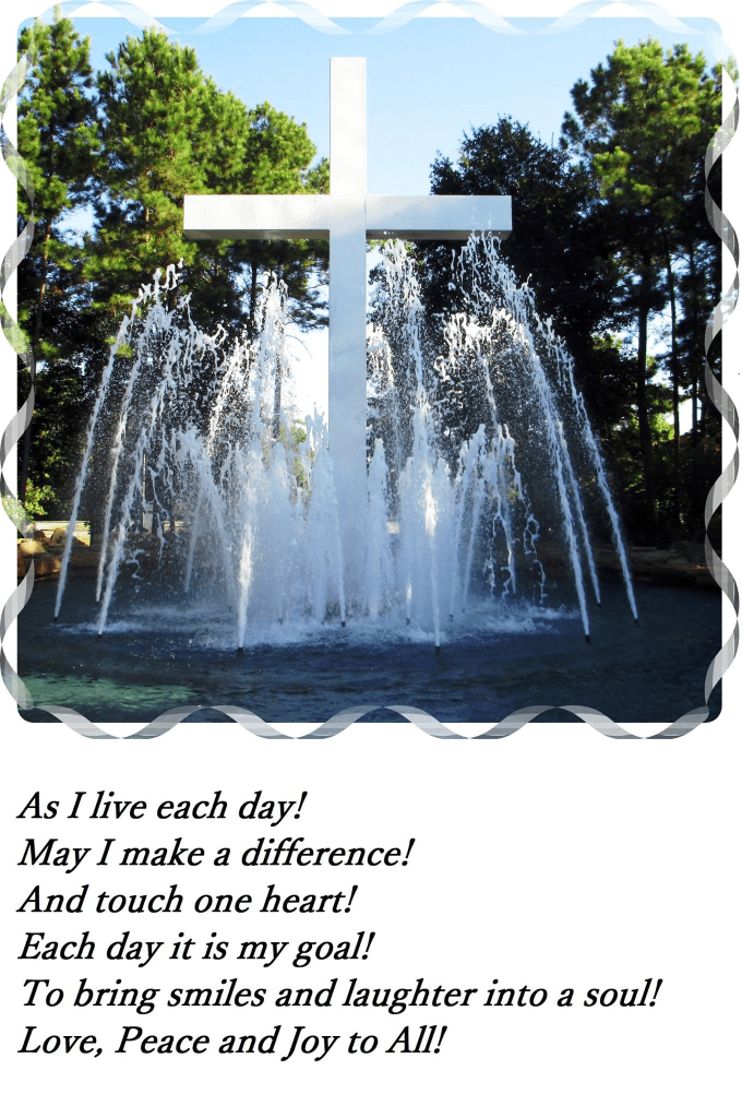 Loving Father God, Thank You and praise You for the gift of this day. As I walk through it, may I be a light in someone’s darkness, a smile in someone’s sorrow, and a reminder of Your love in someone’s loneliness. Help me to make a difference, not through grand gestures, but through simple acts of kindness, compassion, and grace. Let my words bring peace, my actions reflect Your joy, and my heart remain open to those You place in my path. May I live with intention, love without condition, and serve with gladness. Love You, thank You, praise You and give You all the honor and glory in Jesus Precious name, Amen and Amen.