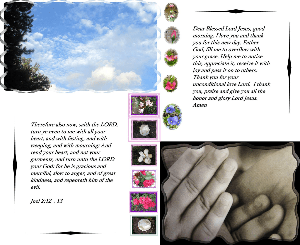 Dear Blessed Lord Jesus, good morning. I love you and thank you for this new day. Father God, fill me to overflow with your grace. Help me to notice this, appreciate it, receive it with joy and pass it on to others. Thank you for your unconditional love Lord. I thank you, praise and give you all the honor and glory Lord Jesus. Amen.
