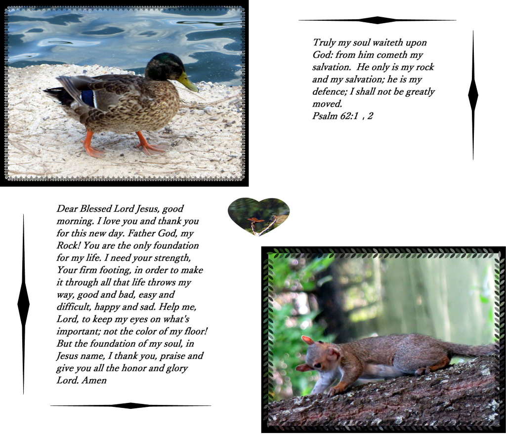 Dear blessed Lord Jesus, good morning. I love you and thank you for this new day. Father God, my Rock! You are the only foundation for my life. I need your strength, Your firm footing, in order to make it through all that life throws my way, good and bad, easy and difficult, happy and sad. Help me, Lord, to keep my eyes on what’s important, not the color of my floor! But the foundation of my soul, in Jesus name, I thank you, praise and give you all the honor and glory Lord. Amen.
