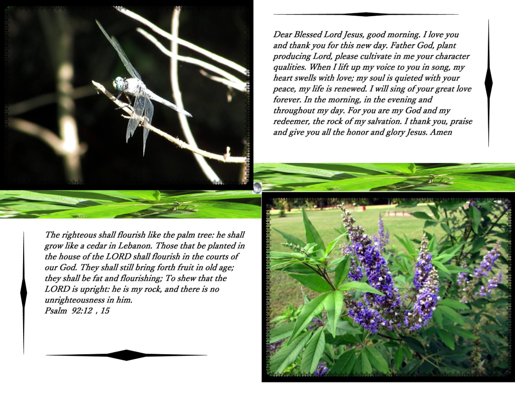 Dear Blessed Lord Jesus, good morning. I love you and thank you for this new day. Father God, plant producing Lord, please cultivate in me your character qualities. When I lift up my voice to you in song, my heart swells with love; my soul is quieted with your peace, my life is renewed. I will sing of your great love forever. In the morning, in the evening and throughout my day. For you are my God and my redeemer, the rock of my salvation. I thank you, praise and give you all the honor and glory Jesus. Amen.
